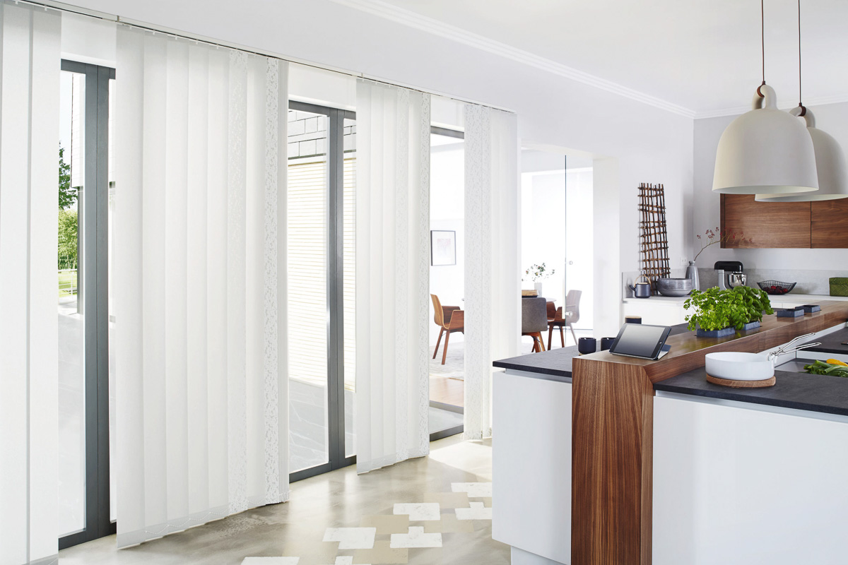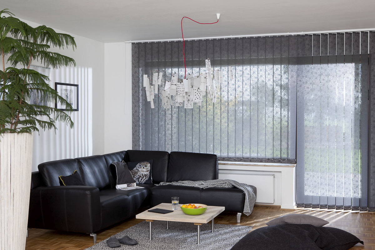 Die vertikalen Lamellen dienen nicht nur als Sicht- und Sonnenschutz, sondern werden im besonderen Maße als dekoratives Element in der Raumgestaltung mit sinnvollem Nutzen höchsten Ansprüchen gerecht.