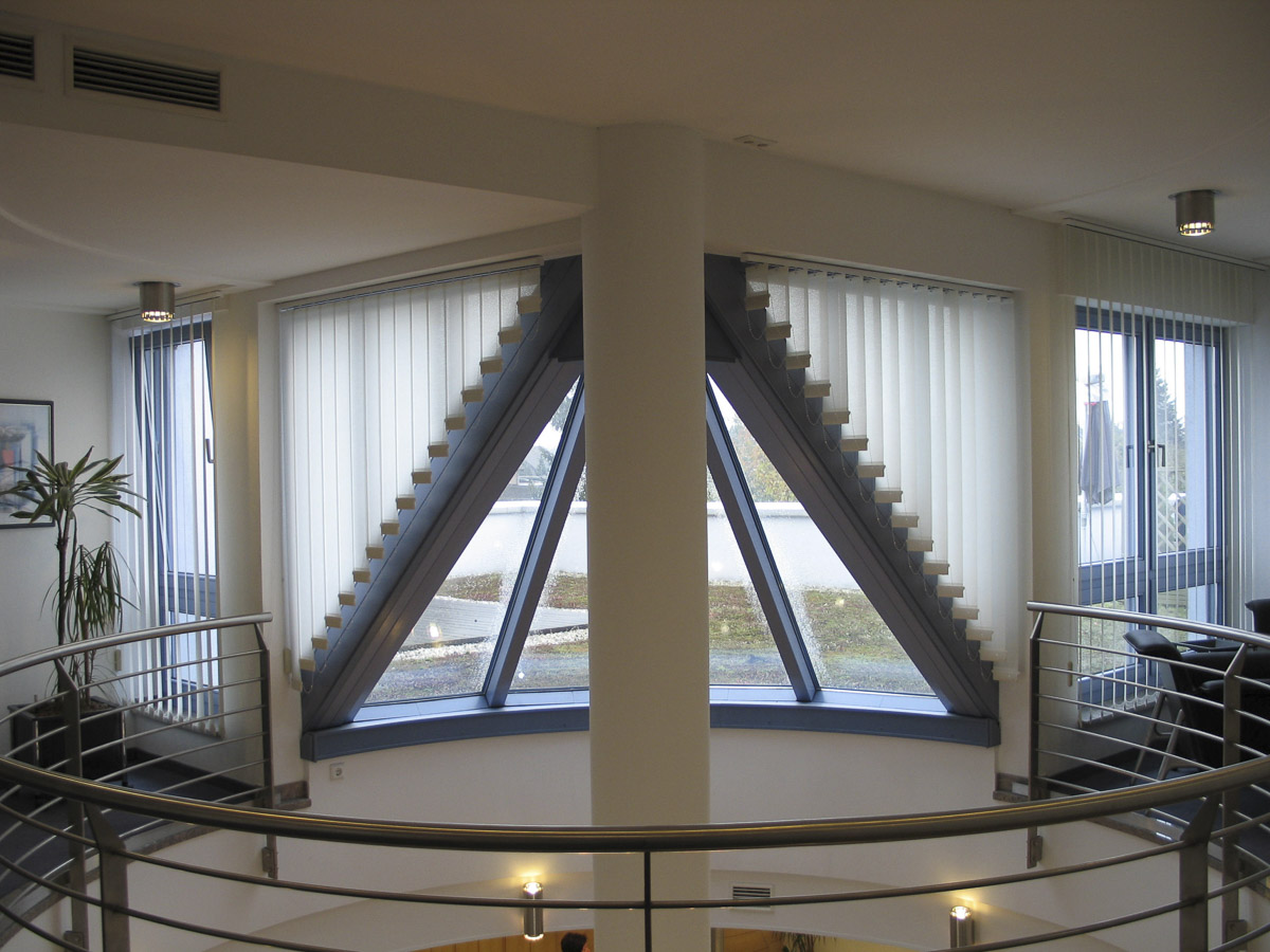 Ob gerade, schräg oder gebogen – Lamellenvorhänge sind variabel und vielfältig einsetzbar. Sie bieten hervorragenden Blendschutz und sind technisch